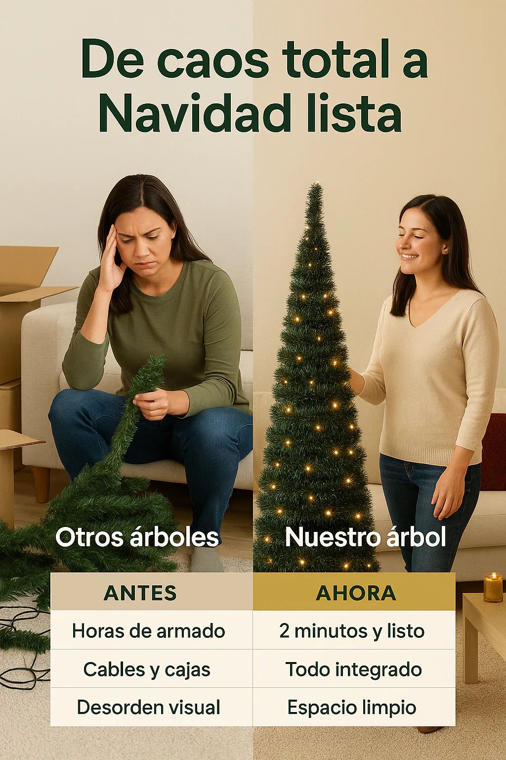 “Cada año odiaba armar el árbol… hasta que encontré este. Ahora mi casa brilla en minutos y sin gritarle a nadie.”